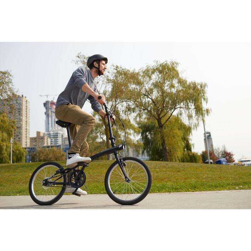 Equipada con una transmisión Shimano de 7 velocidades, la Fold 500 se adapta a diversos terrenos, desde trayectos llanos hasta pendientes moderadas. Sus ruedas de 20 pulgadas con llantas de doble pared y neumáticos con refuerzo antipinchazos garantizan una conducción estable y segura. Además, cuenta con frenos V-brake de aluminio, sillín de espuma viscoelástica sin costuras y manillar ajustable en altura, proporcionando una experiencia de conducción cómoda y ergonómica. En resumen, la BTWIN Fold 500 es una opción versátil y práctica para quienes buscan una bicicleta plegable eficiente para el día a día en la ciudad .
